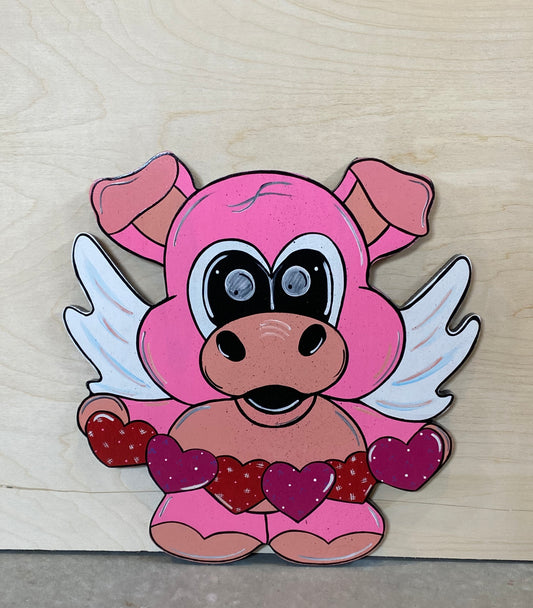 Flying Pig Valentine’s Day Wood Outdoor Yard Art Sign, Door Hanger, Garden Decor