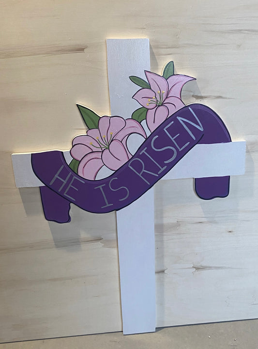 Easter He Is Risen Cross Wood Outdoor Yard Art Sign, Outdoor Easter Decorations