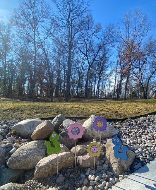 Flower and Worm Wood Outdoor Yard Art Plant Pokes, Garden Decor, Flower Stakes