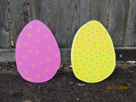 EASTER EGG DECORATION WOOD CUTOUT OUTDOOR LAWN YARD ART SIGN, 9", 12" OR 18" TALL