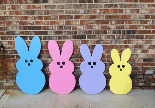 EASTER MARSHMALLOW PEEPS WOOD OUTDOOR YARD ART SIGN, SET OF 4