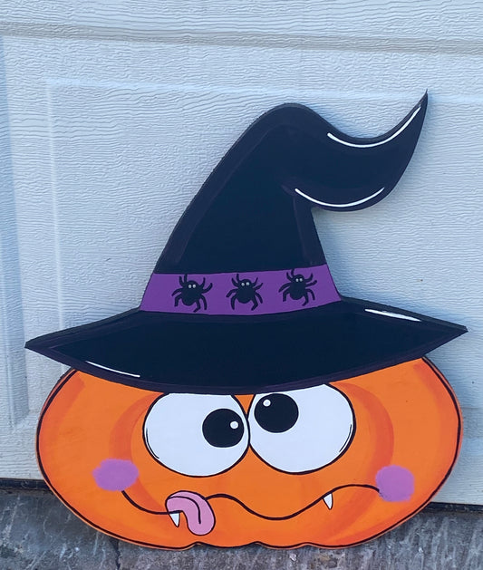 Halloween Pumpkin Witch Hat Wood Outdoor Yard Art Sign, Halloween Decor, Pumpkins