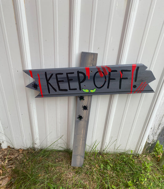 Halloween Keep Out Wood Yard Art Sign, Outdoor Yard Art Decorations, Scary Sign