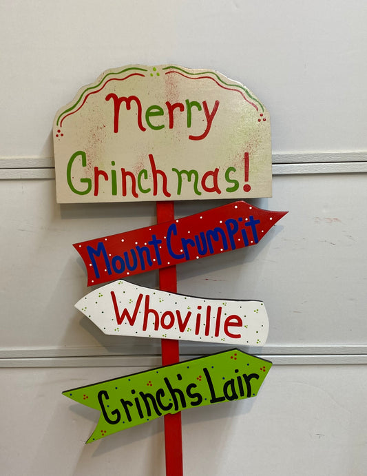 Grinch Whoville Merry Christmas Directional Wood Outdoor Yard Art Sign, Merry Grinchmas