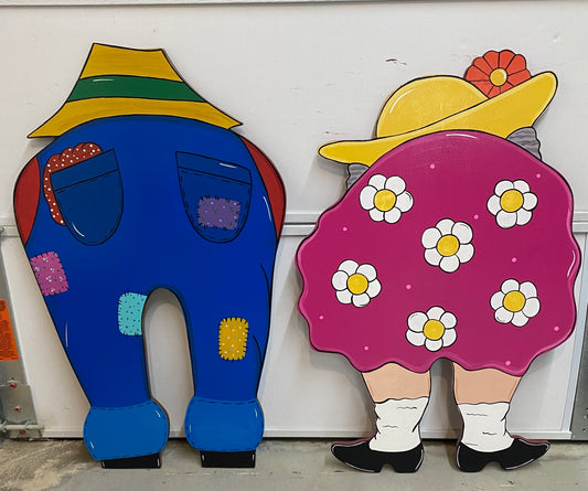 Grandma & Grandpa Bending Over Gardners Wood Outdoor Yard Art Sign, Bent Over Garden Decor