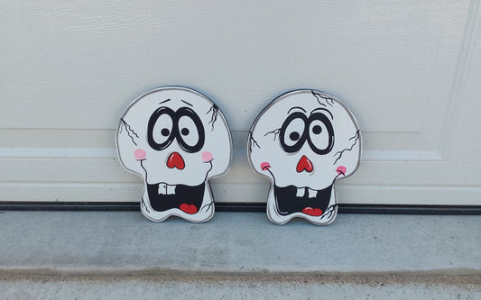 Halloween Skull Skeleton Wood Outdoor Yard Art Sign, Scary Cute Skeleton Lawn Decorations, Garden Stake, Plant Pokes, Set of 2
