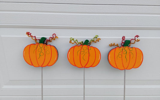 Halloween Wood Pumpkin Outdoor Yard Art Sign, Fall Lawn Decorations, Garden Stake, Plant Pokes, Set of 3