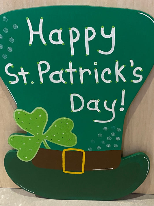 Happy St. Patrick’s Day Leprechaun Hat Wood Outdoor Yard Art Sign