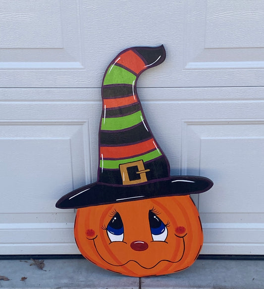 Halloween Pumpkin with Witch Hat Wood Outdoor Yard Art Sign, Halloween Decorations