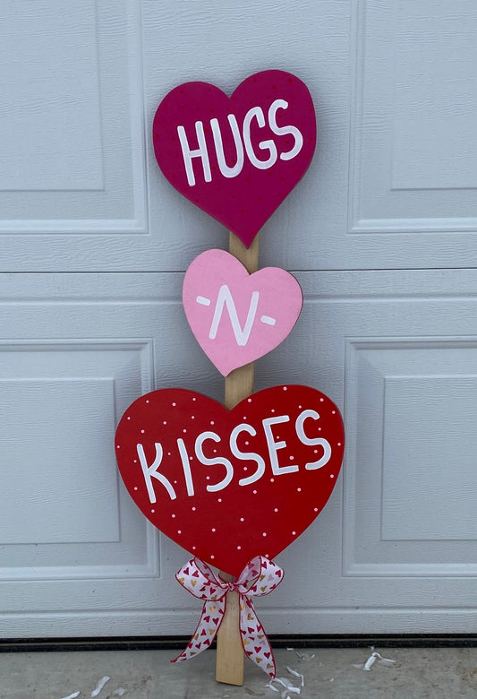 Hugs and Kisses Valentine’s Day Wood Outdoor Yard Art Sign, Hearts, Valentine