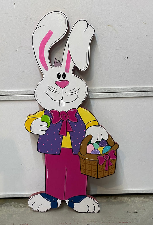 Happy Easter Bunny holding Easter Basket Wood Outdoor Yard Art Sign, Easter Outdoor Decorations, Easter Eggs
