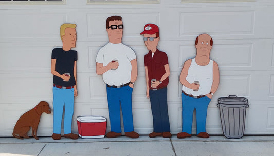 King of the Hill, Hank Hill, Lady Bird, Dale Gribble, Bill Dauterive, Life Size Wood Outdoor Yard