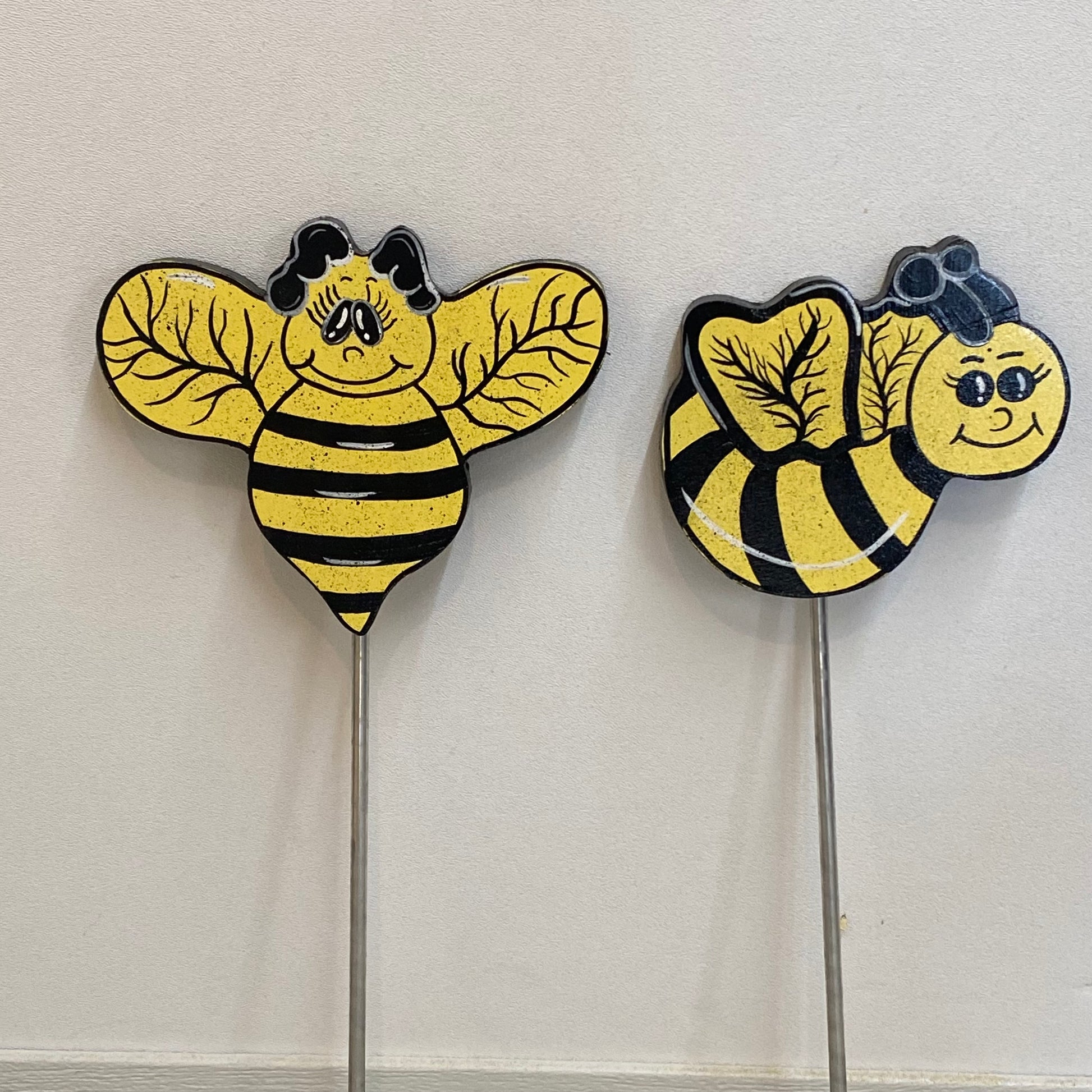 Bee Wood Outdoor Plant Poke, Bees Stake Wood Outdoor Yard Art, Garden Decor