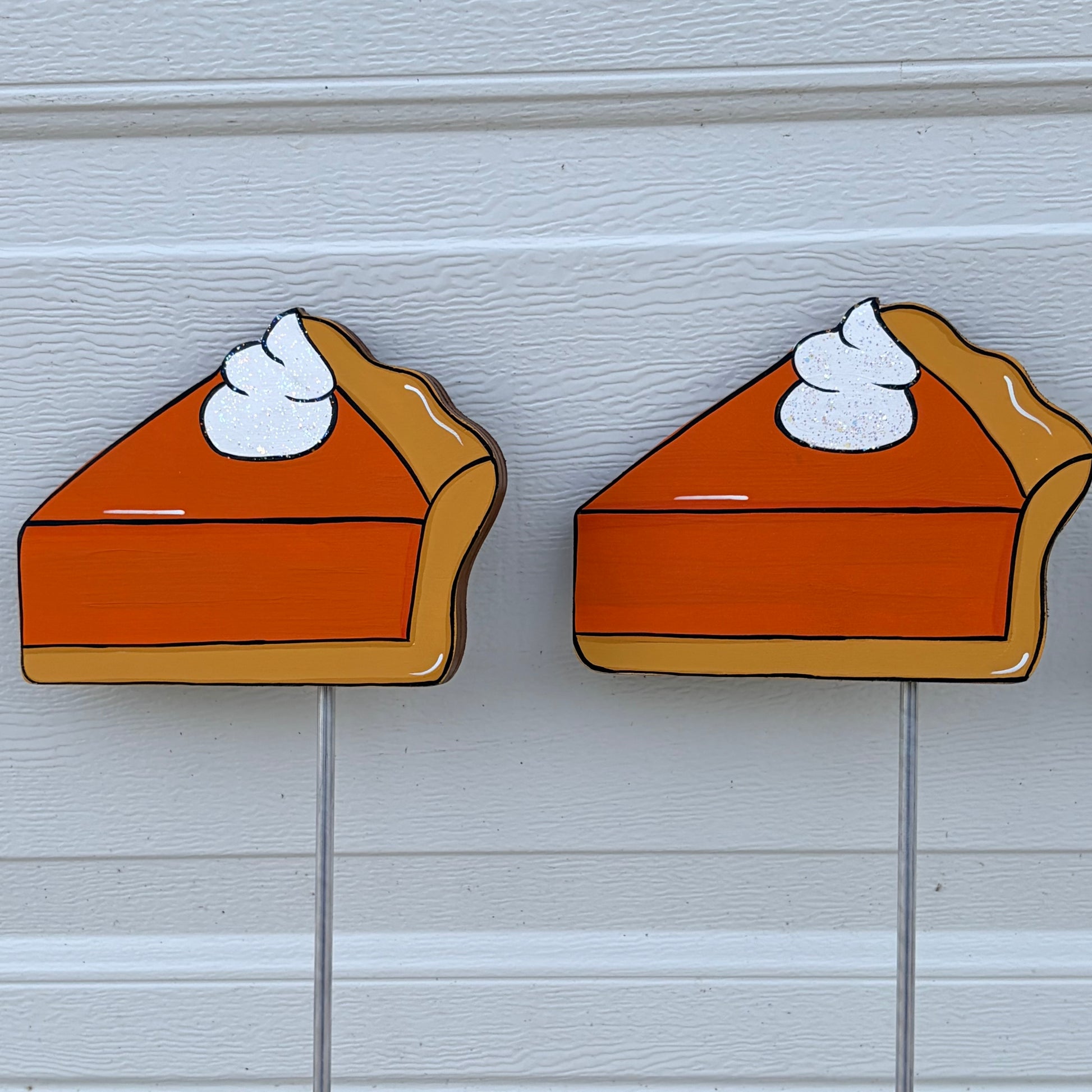 Thanksgiving Pumpkin Pie Wood Outdoor Yard Art Sign, Pumpkin Pie Slice Lawn Decorations, Garden Stake, Plant Pokes, Pumpkin Pie , Set of 3