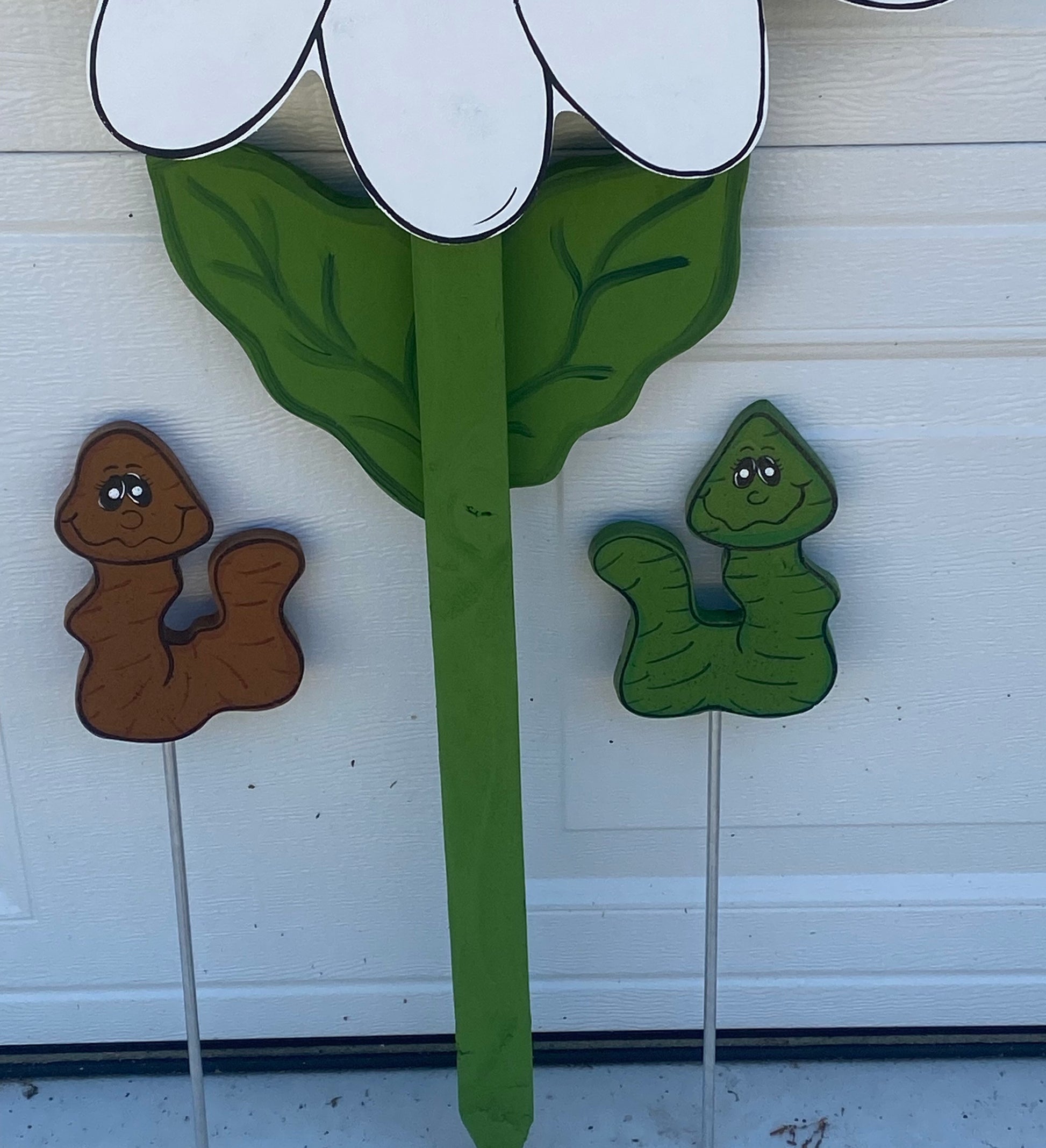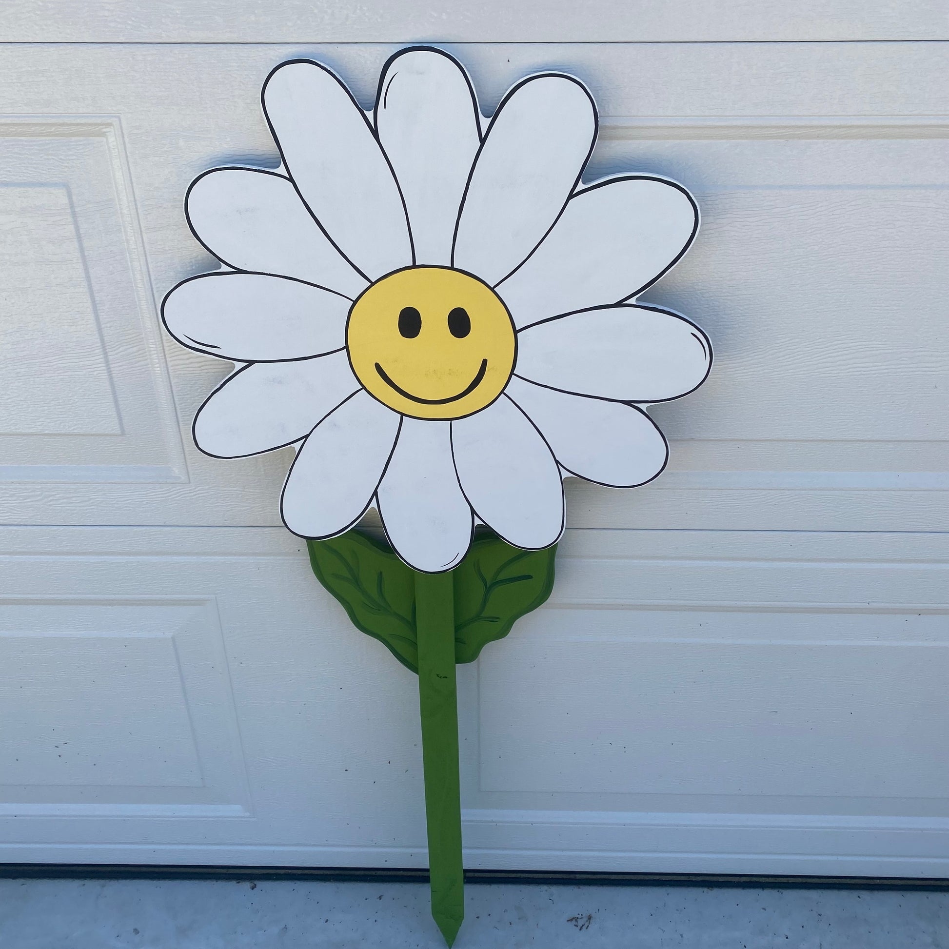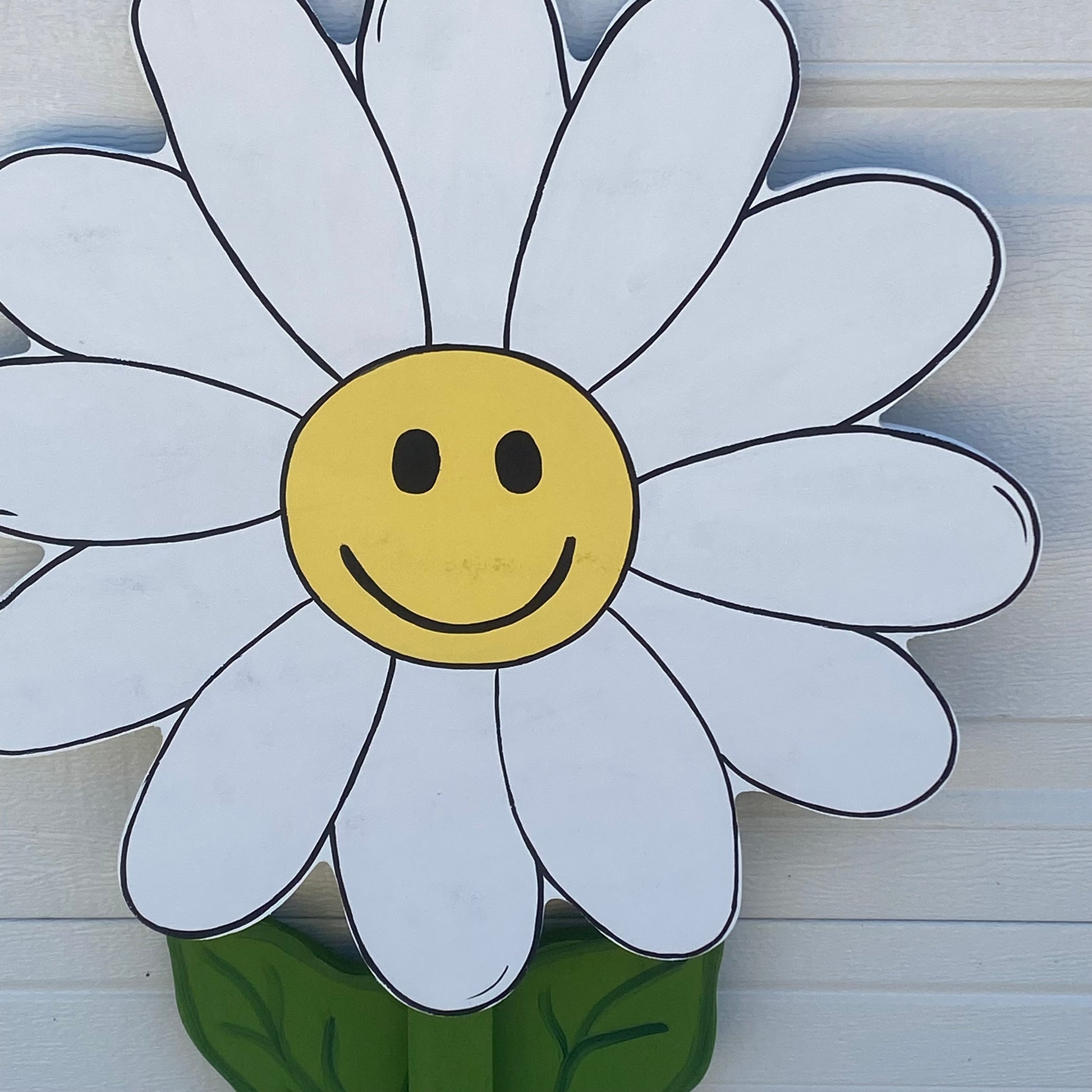 Each daisy is cut from high quality 1/2 inch thick wood by me and hand painted by me.