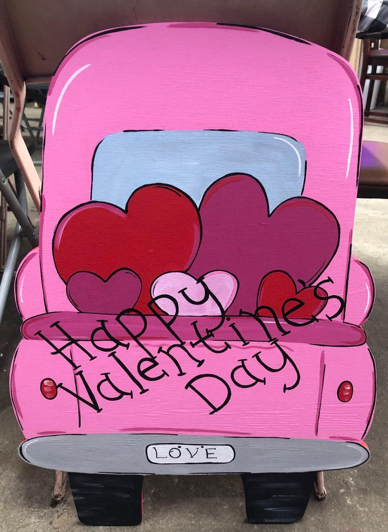 Valentine’s Day Heart Filled Truck Wood Outdoor Yard Art Sign, Pick Up Truck Heart Sign
